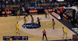 斯普利特就是这样保护身高1米75的小后卫TJ-肖茨,这是巴黎篮球俱乐部的主攻手。