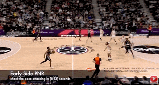 在大开大合的快攻浪潮之下,他们有相当多的快速推进、8-12秒就完成的高位挡拆。